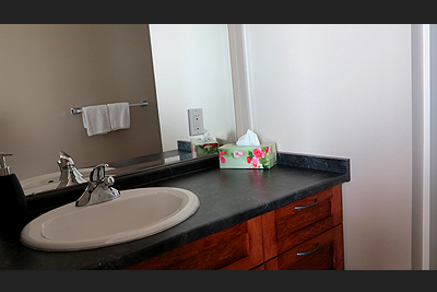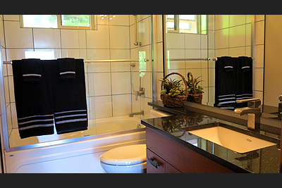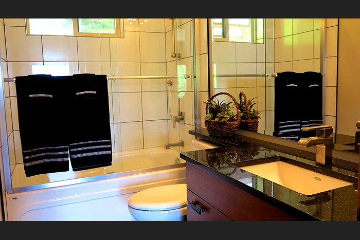 - Full kitchen with gas range, granite counters, refrigerator and dishwasher