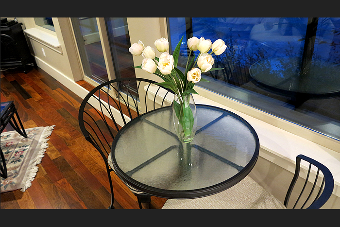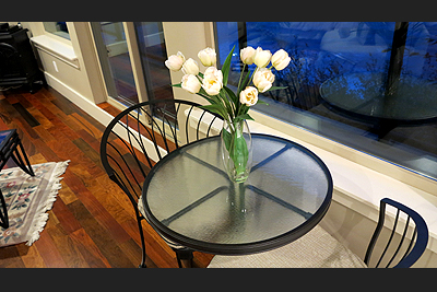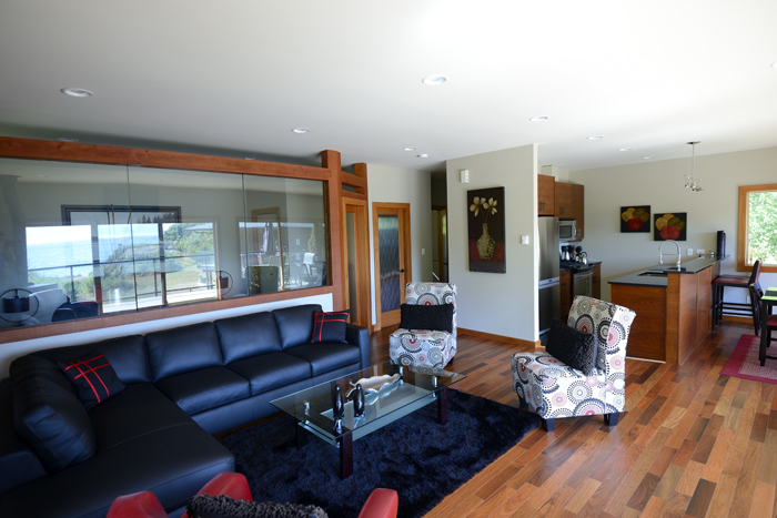 Spacious oceanfront suite with king size bed, full kitchen with gas range, living and dining area, wood stove, balcony, private patio and hot tub. 900 sq ft. Steps to beach.